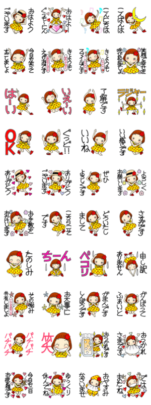 いつも暇をもてあましてるひま子ちゃんの今回は、気楽に使える大人女子の毎日元気に笑顔で挨拶スタンプです。よろしくお願いします!