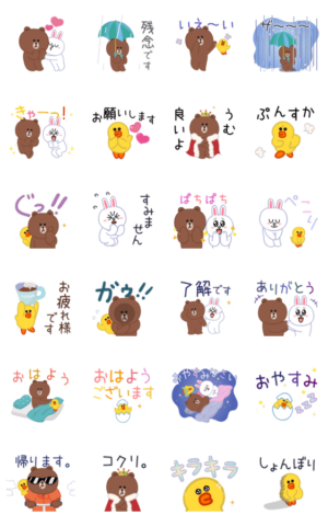 飛び出すブラウン達をmugikoが大人可愛く作りました。おはよう、おやすみなどの挨拶やリアクションもあり毎日使えます。雨、傘、リアルブラウン。BROWN & FRIENDS