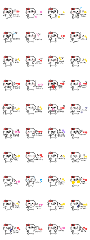 にゃんこりぼん◎あいさつ #1 スタンプに書いてある文字一覧