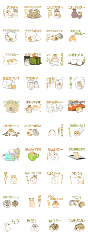 ハムスターを飼っている私からしたらすっごい可愛いです。文字も普段から使えるような言葉ばかりなので普段使いしやすそうだなと思いました。