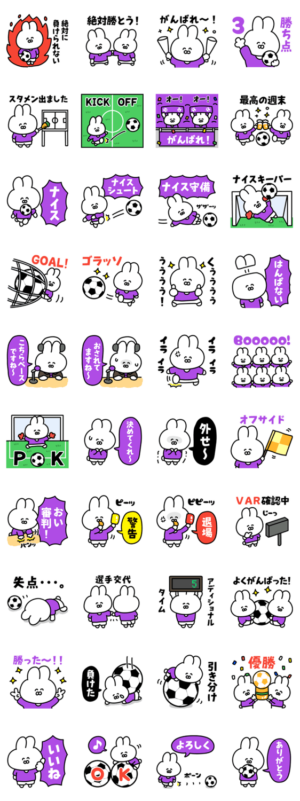 サッカーうさぎ【紫色&白色のチーム】 スタンプ画像一覧