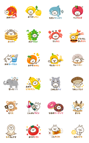 飛び出す!人参とうさぎのダジャレ スタンプに書いてある文字一覧