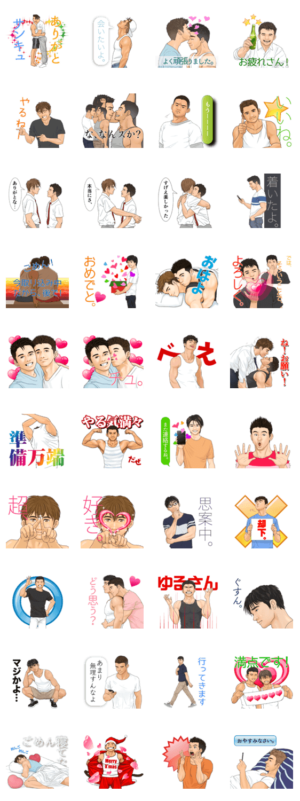 男性同士での恋愛用のスタンプ第3弾です(もちろんそれ以外にも)。今までより文字要素をシンプルに、少し落ち着いた感じにしました。