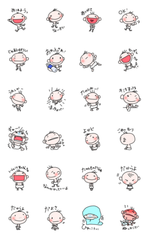 表情豊かな鹿児島弁スタンプ、赤ちゃんバージョンです。日常会話のリアクションをあつめました。