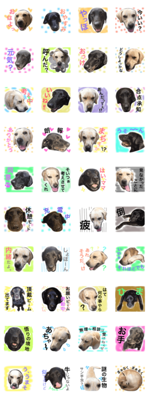 ラブラドール・レトリーバーの仲良し親子、父犬ルイと息子犬サンダーの何気ない日常を切り取りました。普段使いにぴったりなスタンプ満載です。