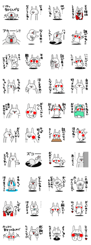 全力でうざい全力でおちょくるあざとかわいいうさぎが毒舌関西弁のツッコミとボケでトークを盛り上げる!ネイティブ関西弁もエセ関西弁も使いやすい日常会話のスタンプ。cosotto より発売