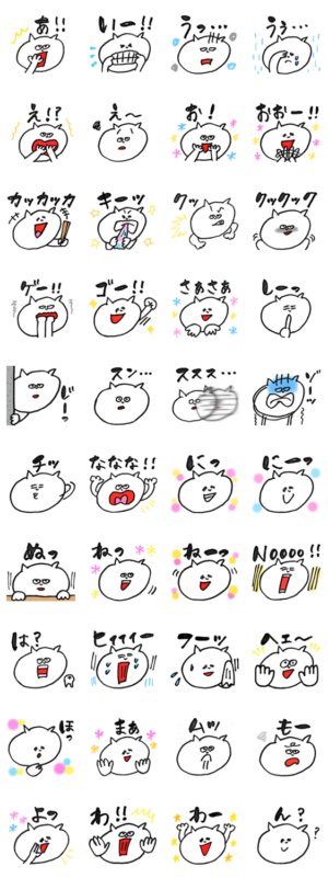 『あ』から『ん』までの50音順リアクションスタンプです。絵文字にした方がよかったのか?果たして使いやすいのか⁈ねこみずざいおん より発売