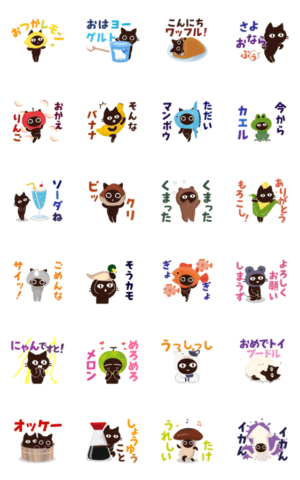 毎日使える!ナチュラルで絵本みたいなねこのスタンプ10は死語・ダジャレ。おはヨーグルトやおつかレモンなど挨拶や返信にぴったり!mugiko より発売