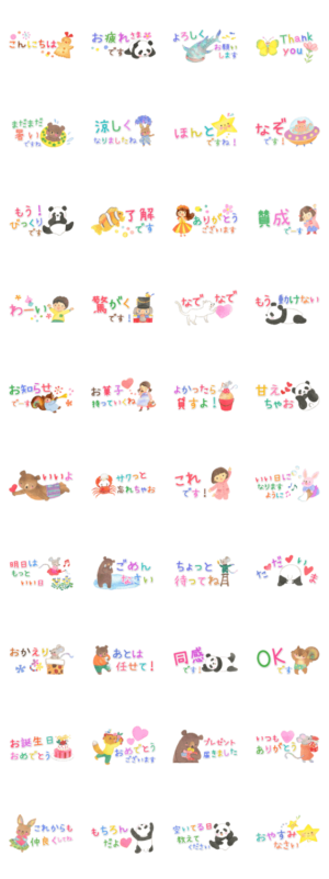 絵本作家Rokoが、水彩で描くかわいい仲間。丁寧な敬語も入った ゆるくて使いやすいコンパクトなスタンプです。パンダが多めで、お誕生日にも使えます!Roko より発売