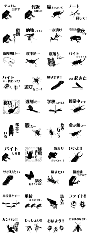 カエル・昆虫・カタツムリの影絵◆学生編 スタンプ情報