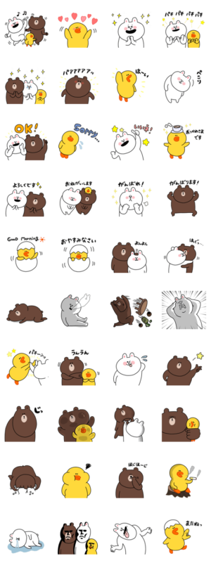 ゆるい手書きのブラウン&フレンズスタンプ第2弾。ブラウン、コニー、サリーの可愛いゆるーいイラストスタンプ