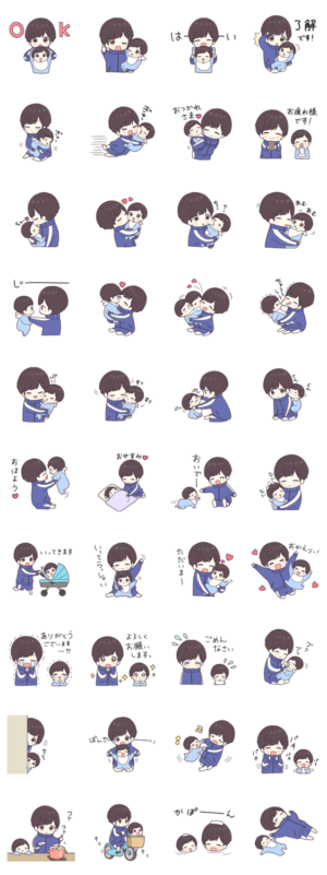 ジャージくんスタンプ第18弾。ベビーになったジャージくんと一緒に、泣いたり笑ったりお出かけしたり、家族の連絡にピッタリなスタンプです♪