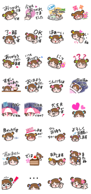 元気いっぱいお団子ヘアの女の子と遊び心のある文字が、楽しいトークルームにしてくれそう❣️お団子girlの絵文字も発売中ですので、ぜひ覗いてみてくださいね(^ ^)