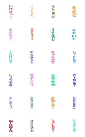 画面いっぱいにデカ文字関西弁が落下するポップアップスタンプです。