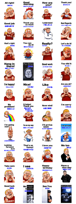 太ってるけど相撲取りじゃないよ、食べるの大好き! ぽっちゃりボディーの、肉男爵 デブ ロックビッグスタンプです。英語と日本語が入っているので英語の勉強にも使えます。 ※このスタンプはトークルームで大きく表示されるBIGスタンプです。マサオウ より発売