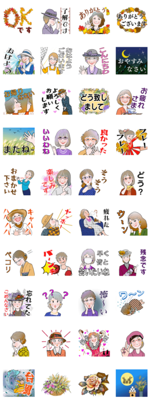 穏やか~激情まで様々な表情が詰まった熟女キャラのスタンプ。見ると悩みが吹き飛びそうにも思います。