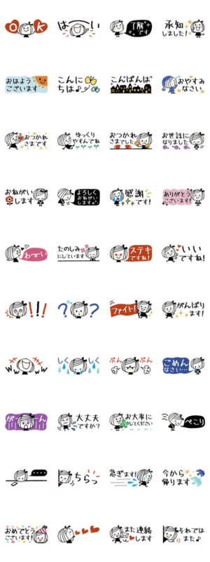 イラストがシンプルでカワイイのでお気に入り。省スペースで敬語なので、グループLINEにも使いやすいです。