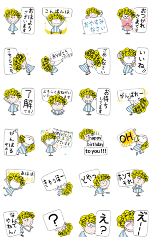 大人気☆くるくるパーマのくるりちゃんの飛び出す吹き出しポップアップスタンプ!色んな場面で毎日使える日常ど定番!シンプルなPOPUPスタンプです♪edacchi