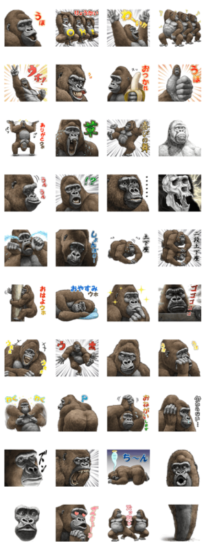 シュールなゴリラのスタンプです。大友しゅうま より発売