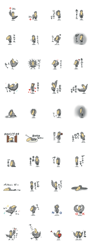 ハシビロコウの日常会話に便利な省スペーススタンプです。トマト より発売