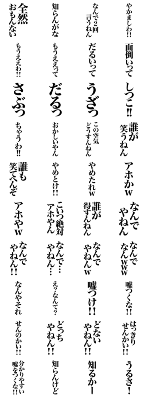 関西弁ツッコミ返信 スタンプに書いてある文字一覧