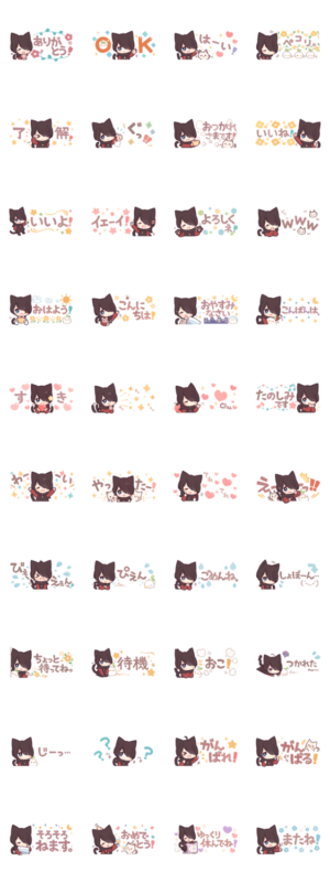 毎日使えるリアクションや挨拶が入った白猫少年の双子、元気な黒猫少年の省スペーススタンプです。佐治 より発売