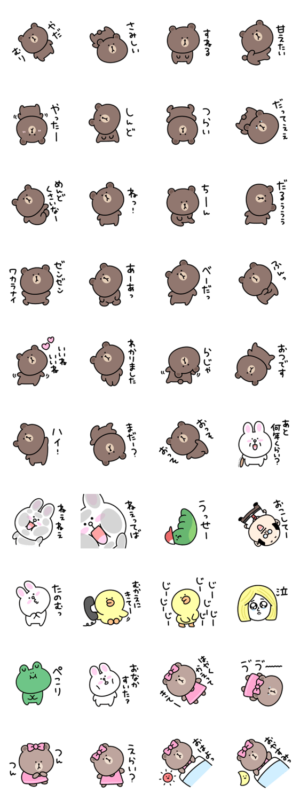 【過保護】シュールなミニブラウン スタンプに書いてある文字一覧