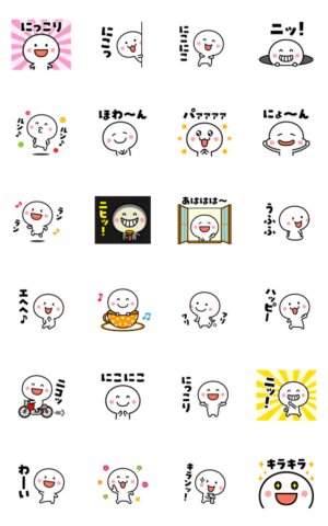 毎日笑顔でいたい。にっこりスマイル、にこにこ、そんな笑顔のスタンプばかりを集めたものです。おーじろう より発売