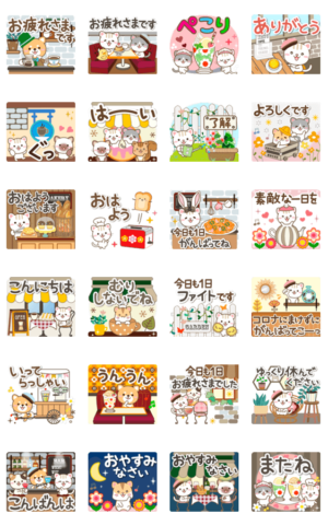 大人のためアニマルズのカフェとガーデンのポップアップスタンプです。大人可愛い動物たちがカフェやお庭で癒やしを届けます。どうぶつ・グリーン・カフェ・挨拶・飛び出す