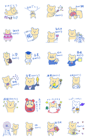 たくさんお祝いするための、おめでとうだけのスタンプです。ohitsujiza より発売