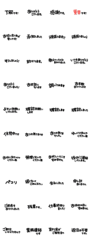 シンプル文字♡毎日使えるお仕事ことば スタンプ画像一覧