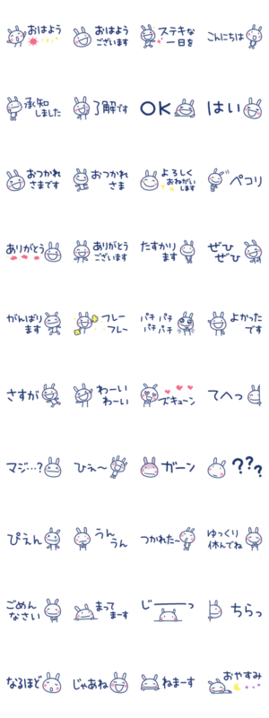 省スペース☆ほぼ白うさぎ スタンプに書いてある文字一覧