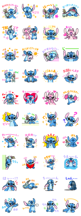 ポップなカラーリングがかわいい、スティッチの敬語スタンプ!丁寧な言葉づかいだから、誰にでもどんなシーンにも使いやすい♪ウォルト・ディズニー・ジャパン(株) より発売