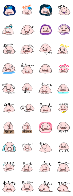 ちょっと気持ち悪いけどちょっと可愛いニュウドウカジカのスタンプです。ながお より発売