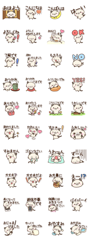 小さいシャムネコのスタンプです。基本的な言葉や、日常で毎日使えるあいさつ、丁寧な言葉等、便利なスタンプです。ねこ好きな方にぜひ。【かたこ】かたこ より発売