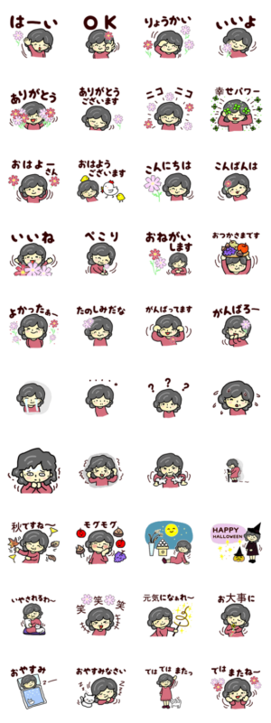 おばあちゃんの笑顔、秋スタンプです。てんじくあおい より発売