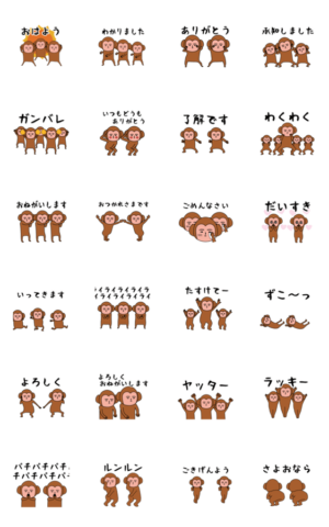 いつもの面白スタンプ。サルの着ぐるみ編。毎日使える言葉がたくさんhitta より発売