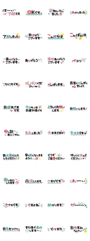 すっきりしてて見やすい敬語の省スペーススタンプです。シンプル/可愛い/でか文字/敬語/よく使う/あいさつ/毎日/日常アルク より発売