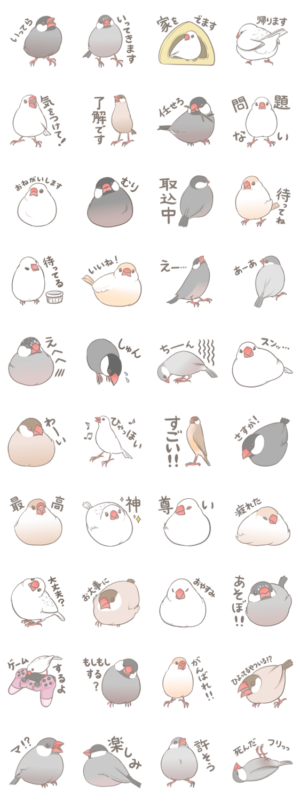 文鳥のスタンプ第2弾です。ふくふく堂 より発売