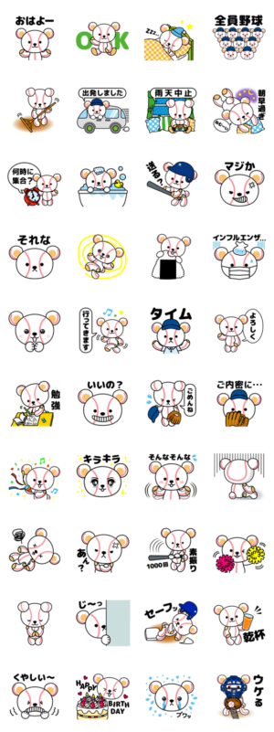 大好評の「野球クマさん」スタンプの第2弾です。前回に続き、野球関係者のみなさんが楽しみながら使えるスタンプ満載です。さちまる より発売