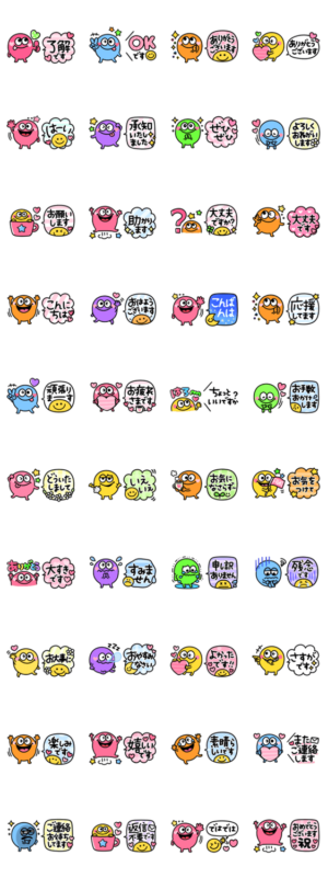 カラフルモンスター♡敬語吹き出し スタンプ画像一覧