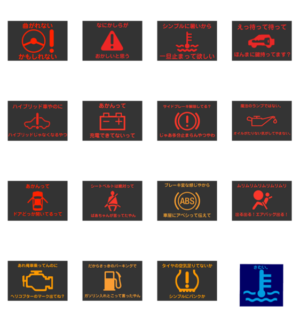 スタンプで覚える車の警告灯 スタンプに書いてある文字一覧
