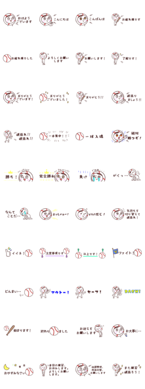ラインのやり取りが見やすい省スペースタイプ。野球が好きな人、部活や少年団、チームのメンバー、保護者などみんなに使えるスタンプです。毎日使える/部活/少年団