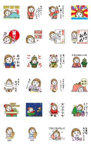 憎めないブスの動くスタンプ、お正月、クリスマス等冬のイベント版!あけましておめでとう等年賀状代わりになるお年玉行事スタンプ!ブサイクだけど愛嬌があります。