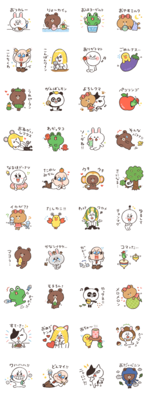 だらだらっとした、ゆるーいブラウンやコニーたちのスタンプその3、楽しいダジャレのスタンプです! ※BROWN & FRIENDS をみんなでつくろう!キャンペーン参加スタンプです