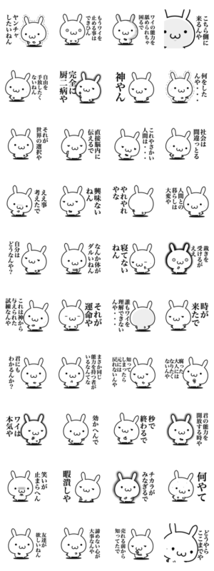 関西弁で厨二病にならずにはいられないウサギのスタンプです。hoshico より発売