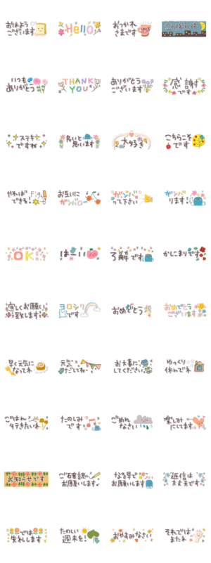 見やすくシンプル、定番フレーズ、敬語、パステル、花、毎日使えます。キロンキロン より発売