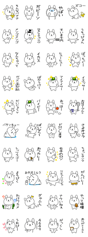 しろくてまるい死語:しごや駄洒落:ダジャレをしゃべるウサギ:うさぎの日常会話のスタンプです もるきゅた作もるきゅた より発売