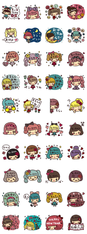 ちいちゃんが使うスタンプです。誕生日用、クリスマス用、正月用を入れた、毎日使える名前入りセットです。