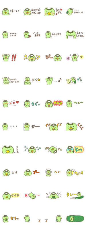 河童さんの省スペーススタンプです。敬語・挨拶も少し入っているので使いやすいセットです♪